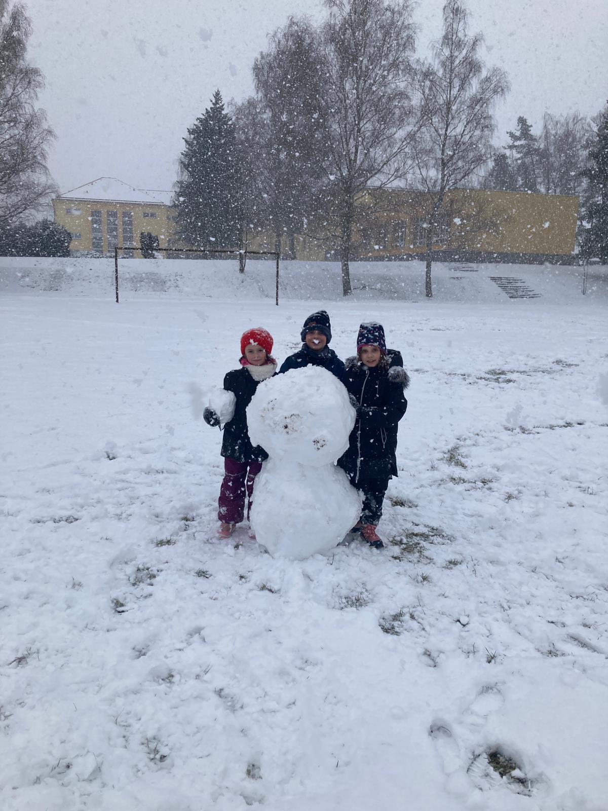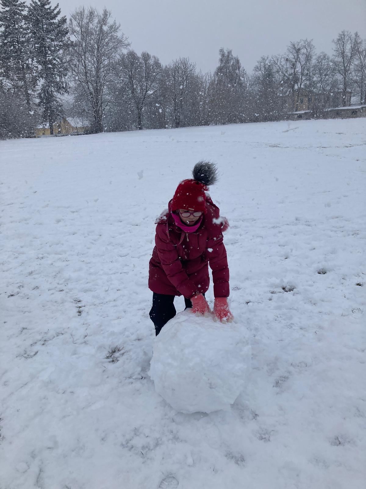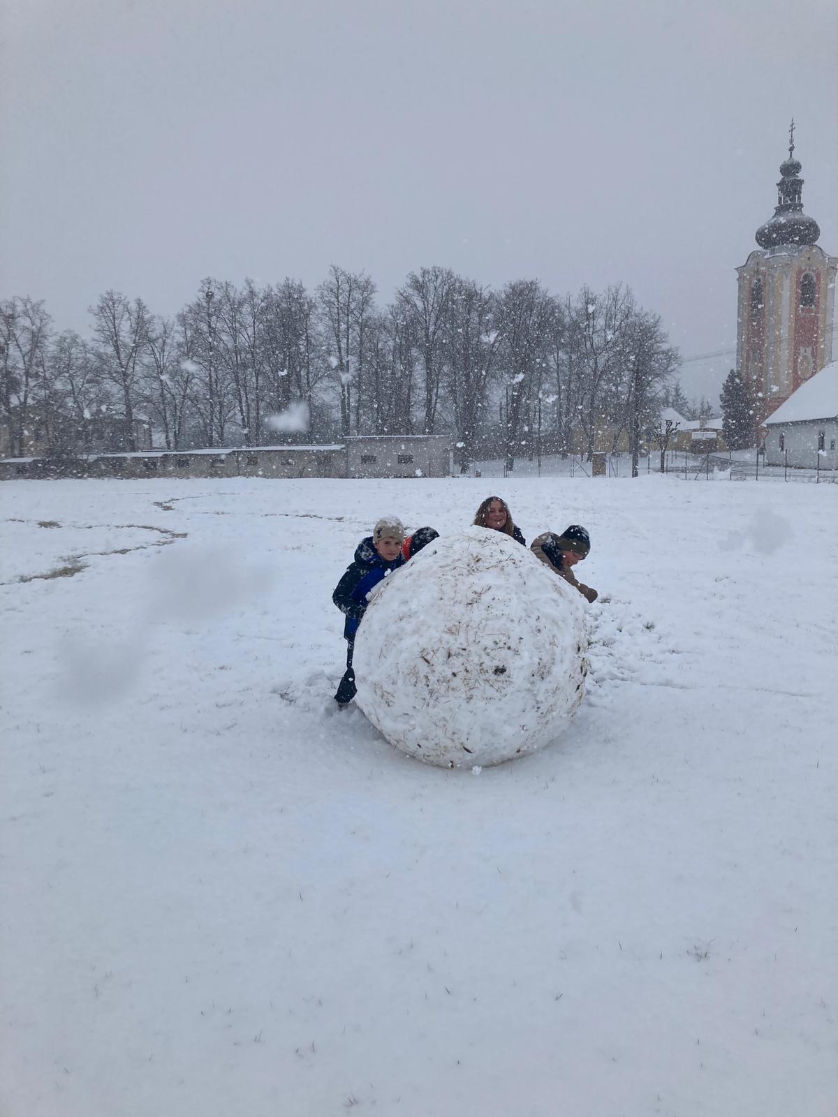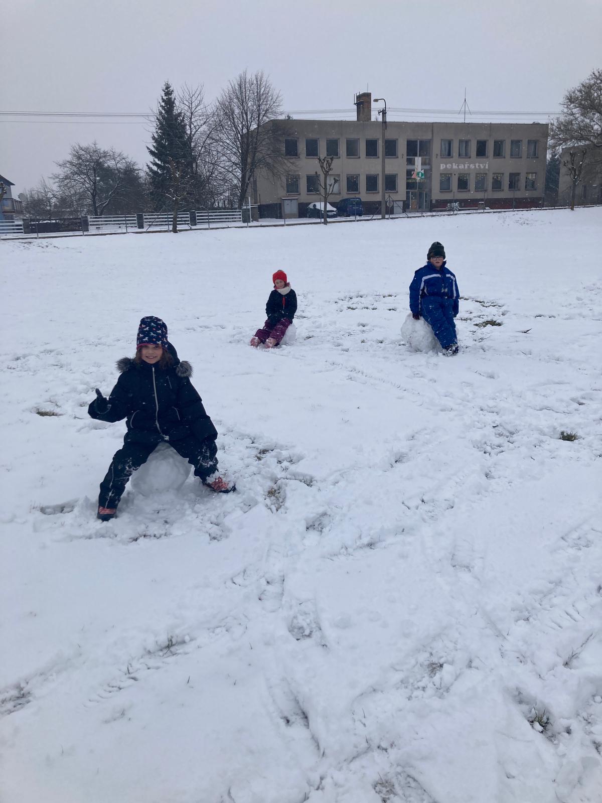 V uplynulých dnech nám počasí přálo a školní zahradu i hřiště pokryla bohatá sněhová nadílka. Děti ze školní družiny proto neváhaly a vydaly se ven užít si pravou zimní atmosféru. Hlavní zábavou se stalo vyrábění obřích sněhových koulí.