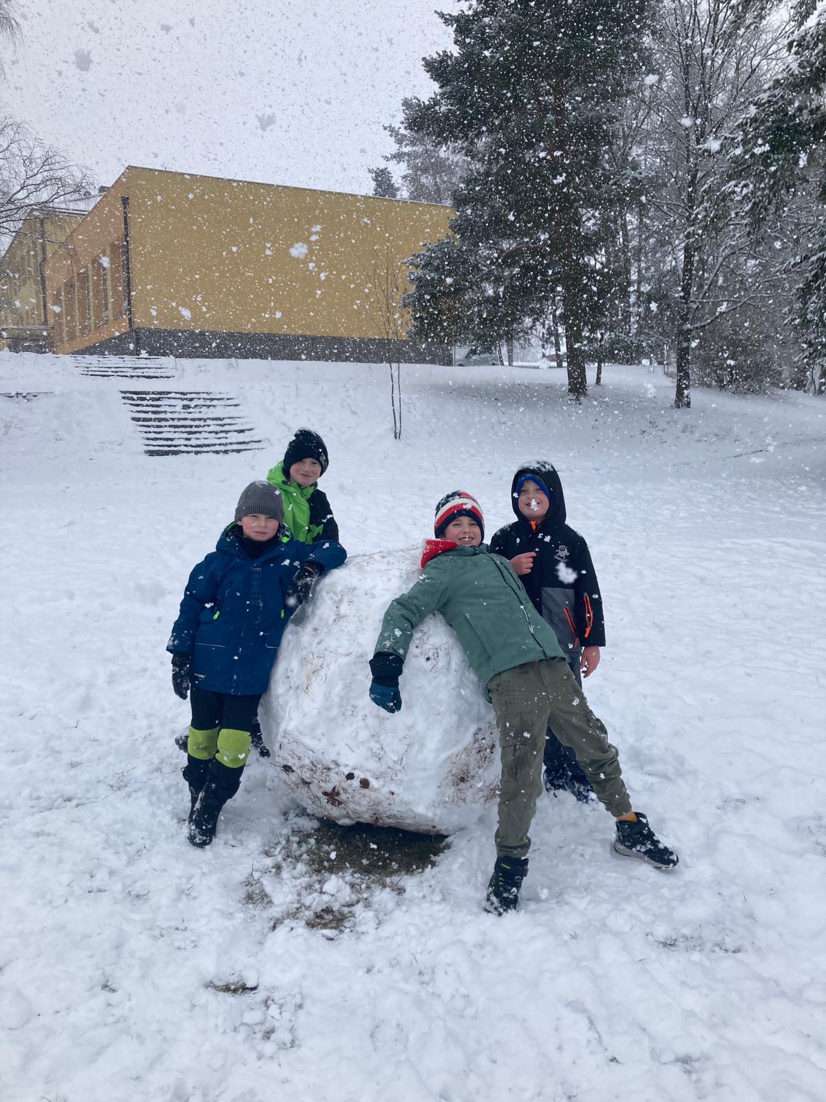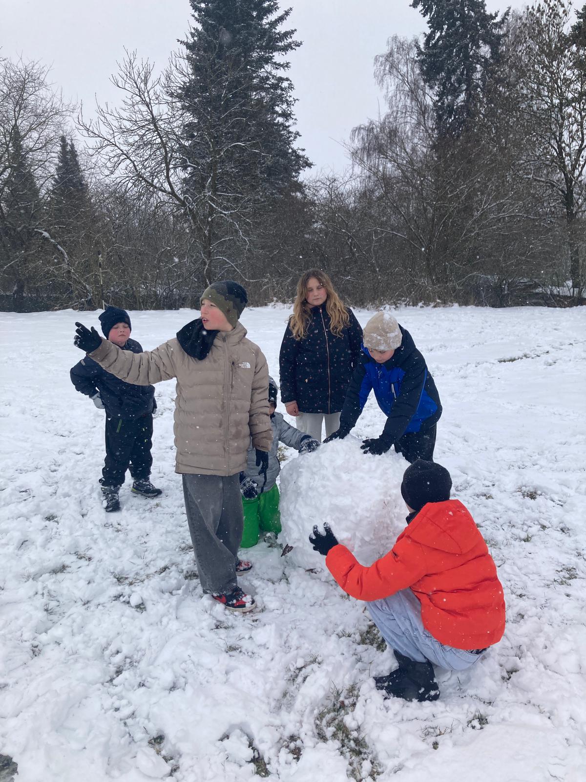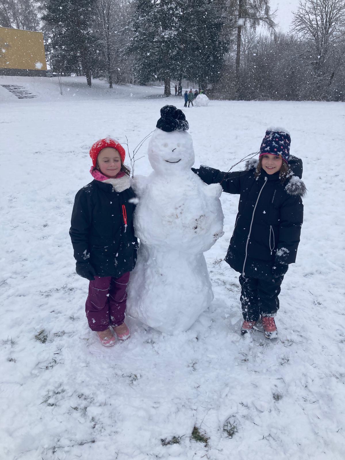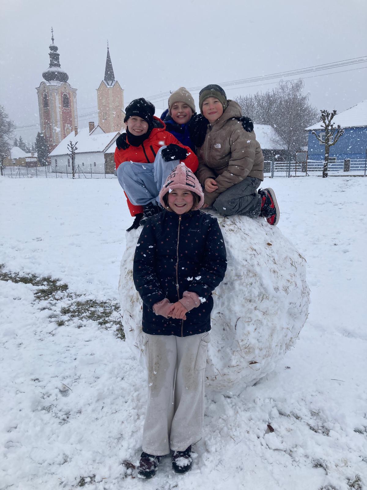 V uplynulých dnech nám počasí přálo a školní zahradu i hřiště pokryla bohatá sněhová nadílka. Děti ze školní družiny proto neváhaly a vydaly se ven užít si pravou zimní atmosféru. Hlavní zábavou se stalo vyrábění obřích sněhových koulí.